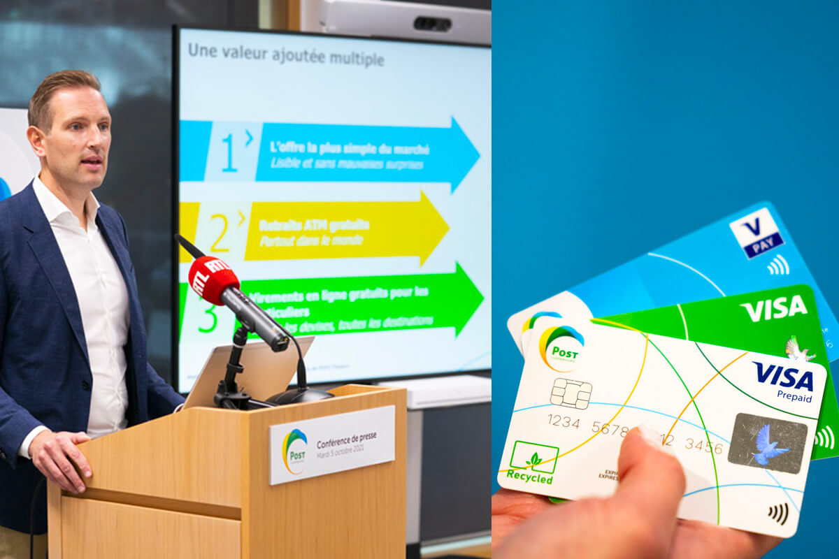 Einzigartig in Luxemburg: Neben den gebührenfreien Online-Überweisungen für Privatpersonen wird diese Neuausrichtung des Bankangebots der POST ihren Kunden ab dem 10. Januar 2022 ermöglichen, kostenlos an allen Geldautomaten in Luxemburg und im Ausland Geld abzuheben und ihre Karten überall auf der Welt kostenlos zu nutzen.